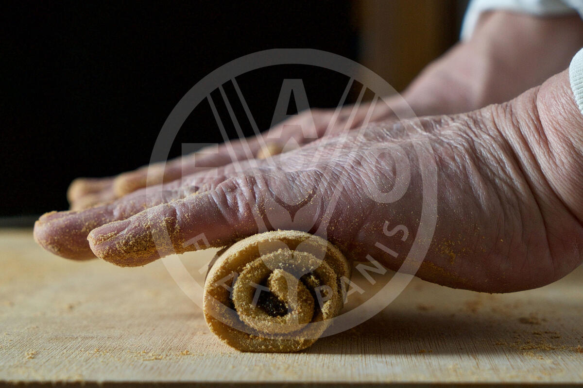 005 March 2016, Beijing, China - Renowned Chinese chef SHE Zengtai preparing red bean rolls at home in Beijing.