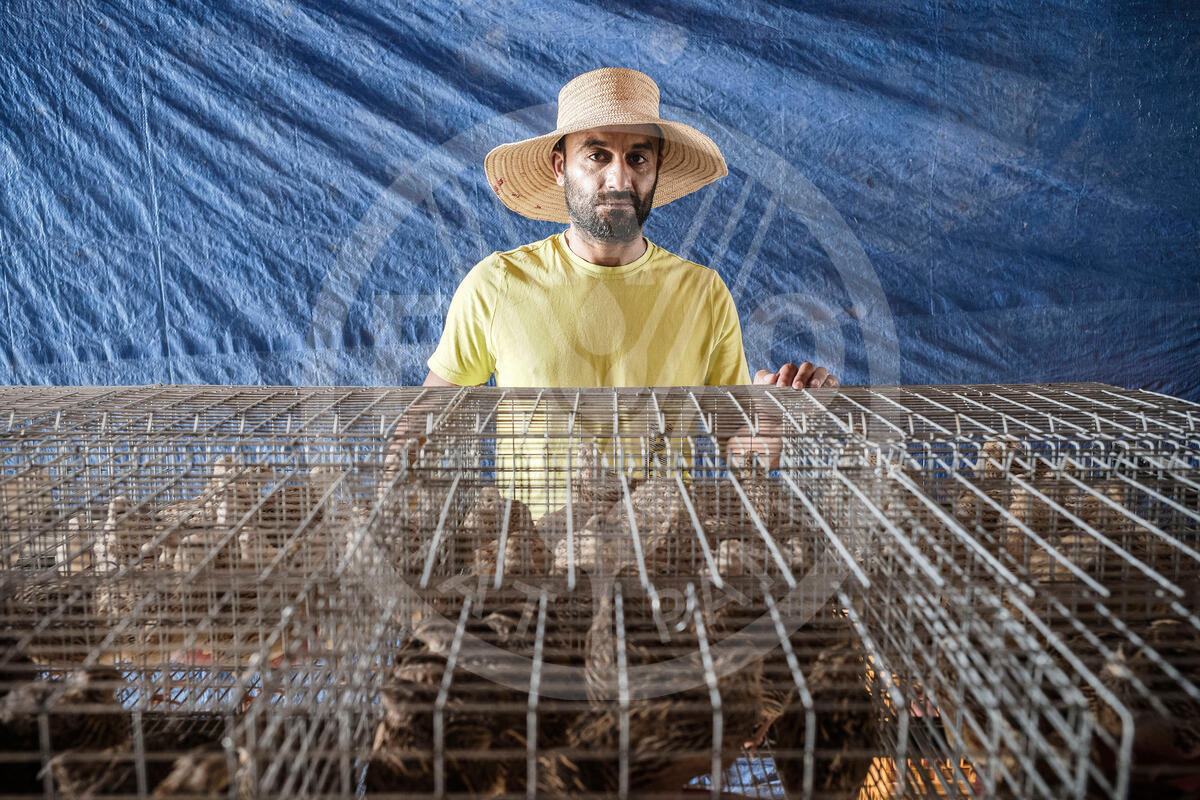 13 July 2017, Sidi Makhlouf, Médenine, Tunisia - Mohamed Baaka. Quail breeding and egg production.
