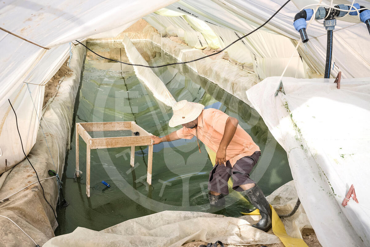 12 July 2017, Wedhref, Gabès, Tunisia - Hichem Chetaoui. Small scale spirulina production unit.