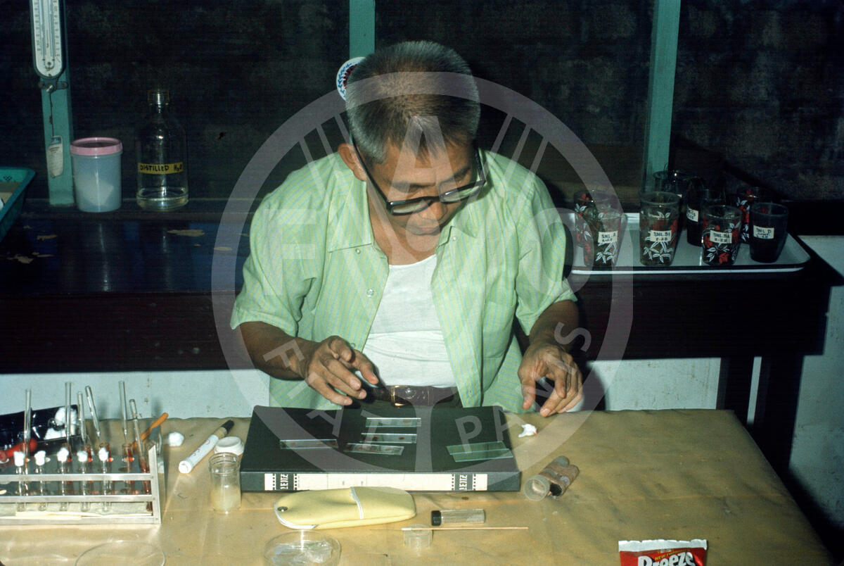 A research technician at work in the laboratory of the Schistosomiasis Control Pilot Project Headquarters in Palo, Layte.