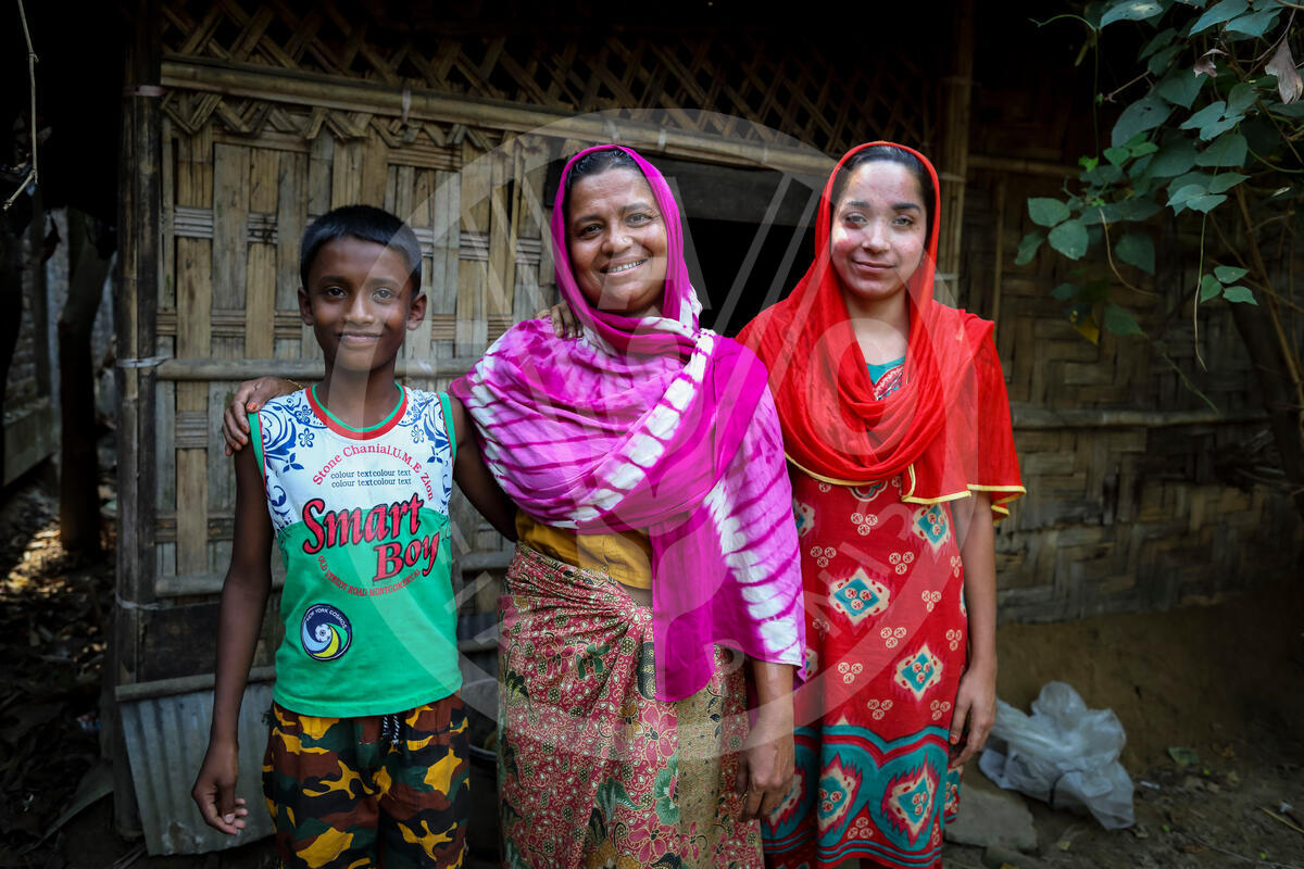 24 March 2018, Noiton Para, Teknaf, Bangladesh - Momtaj Begum, 45, posing for a portrait with her family.