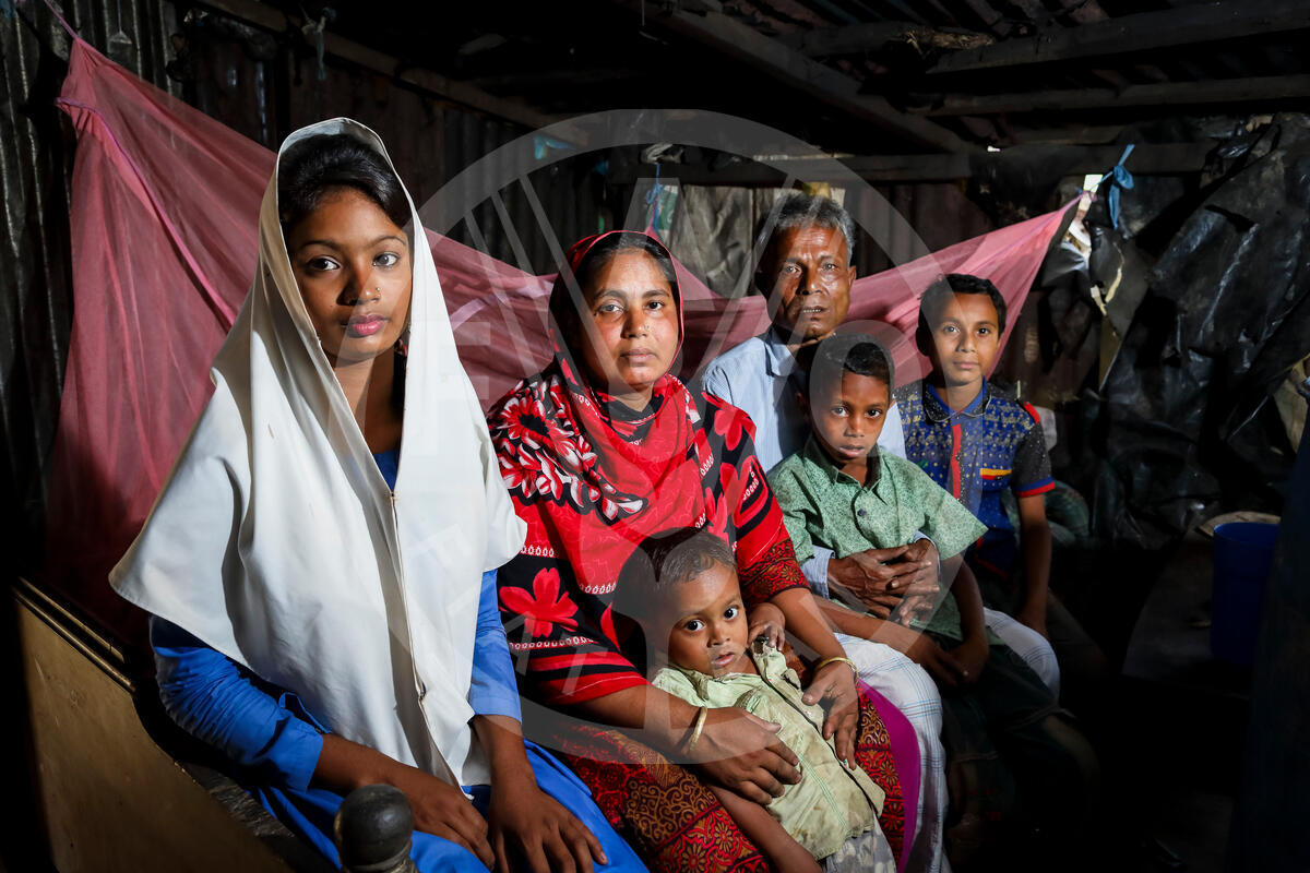 22 March 2018, Valukia Majerpara, FFS, Ukhiya, Cox's Bazar, Bangladesh - Toyoba Begum, 30, member of FFS, posing for a portrait with her family.