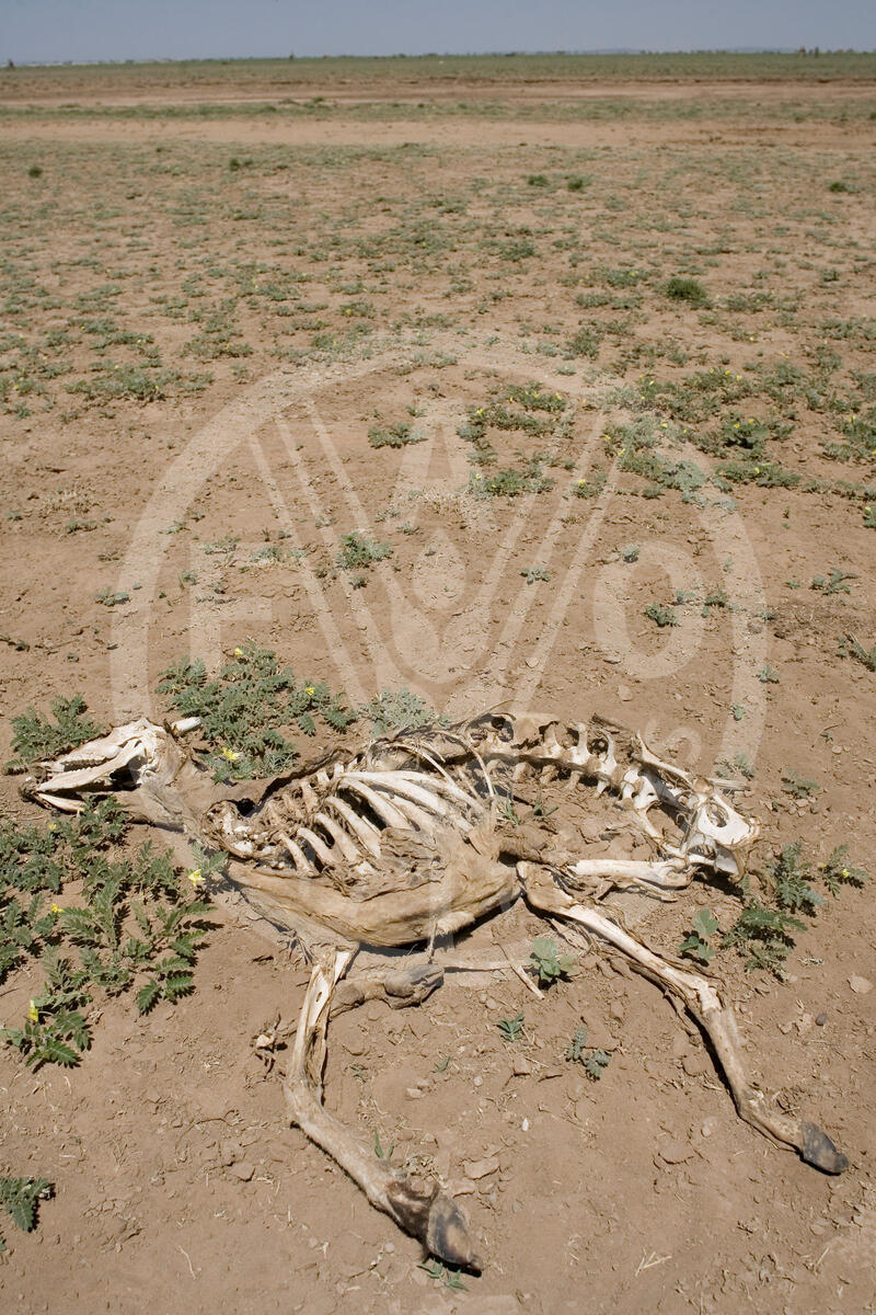ETHIOPIA 2009. Carcasses of cows and goats that perished during the August-Sepember 2008 drought. Some grass is visible following a few days of rain in the the last month of January 2009.