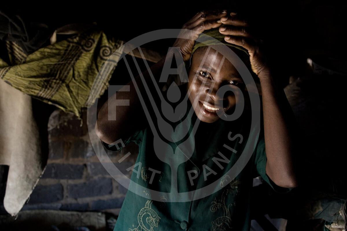 DEMOCRATIC REPUBLIC OF THE CONGO 2008. A woman inside a hut in Kalemie, Raha Villlage, Katanga Region.