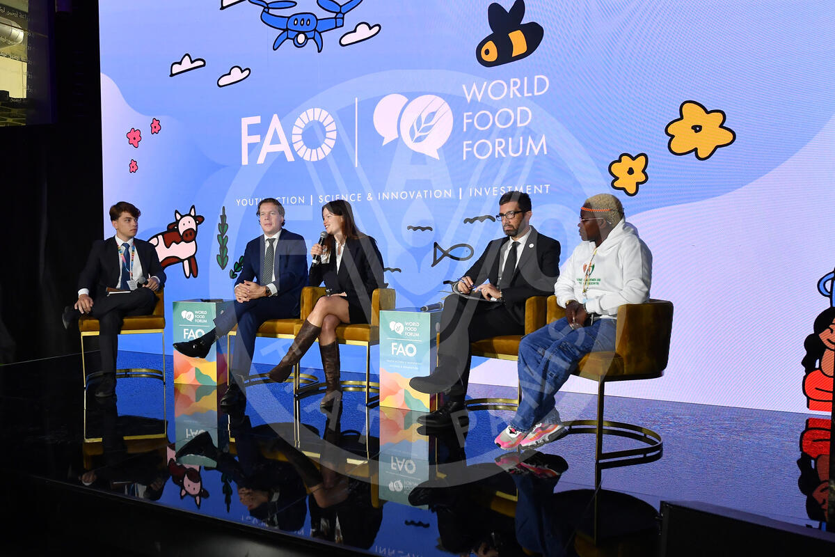 15 October 2024. Rome, Italy. View of panelists at the World Food Forum event, From Policy to Action: Youth shaping global agri-food systems.