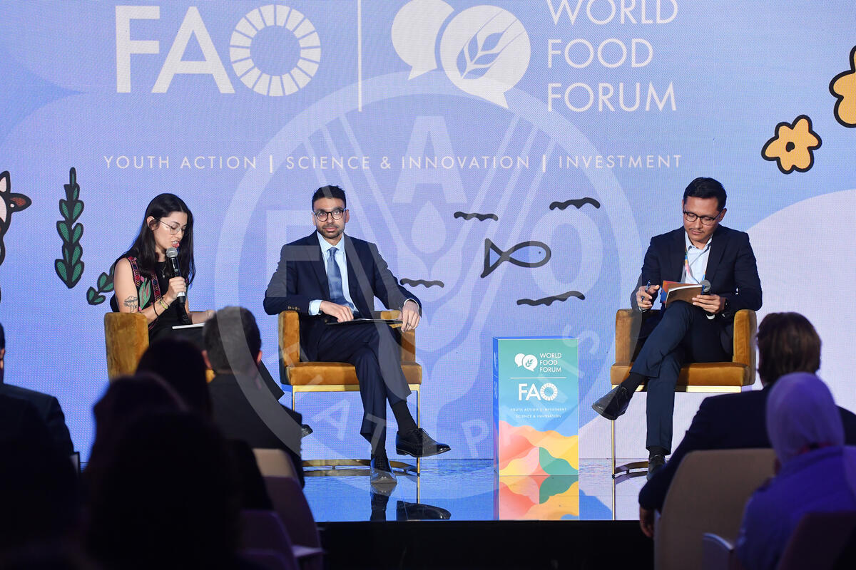 15 October 2024. Rome, Italy. View of panelists at the World Food Forum event, From Policy to Action: Youth shaping global agri-food systems.
