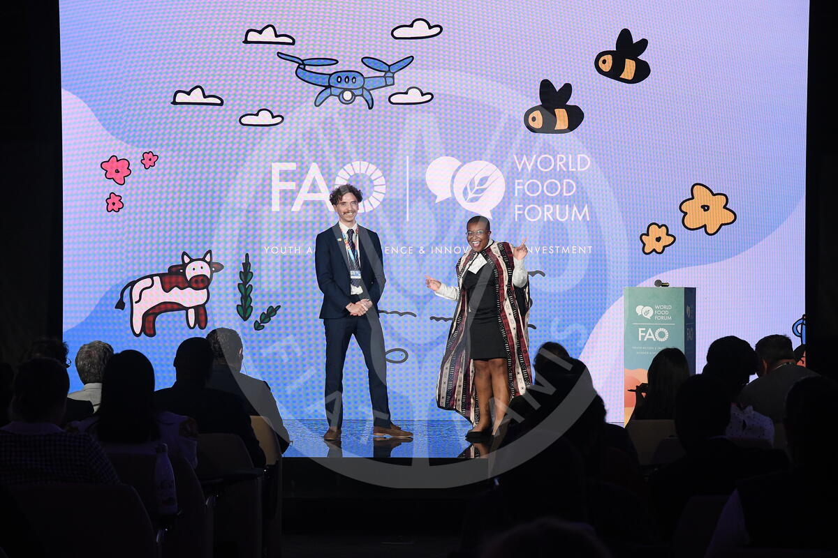 15 October 2024. Rome, Italy. Moderators open the World Food Forum’s AgX Fair Finals.