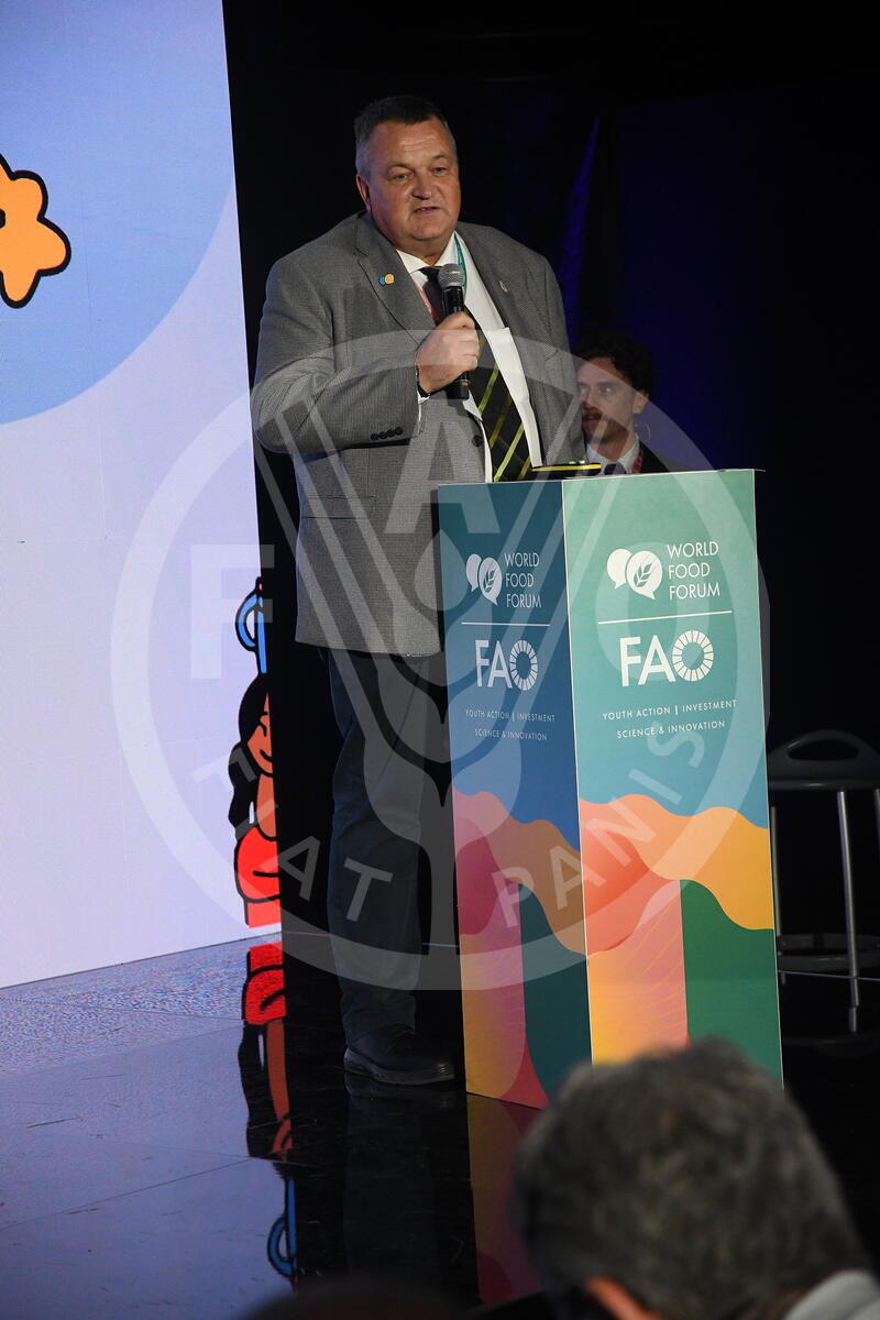 15 October 2024. Rome, Italy. Harry O'Crowley, Head of International Development, UN and SDG's Unit, addresses the World Food Forum’s AgX Fair Finals.