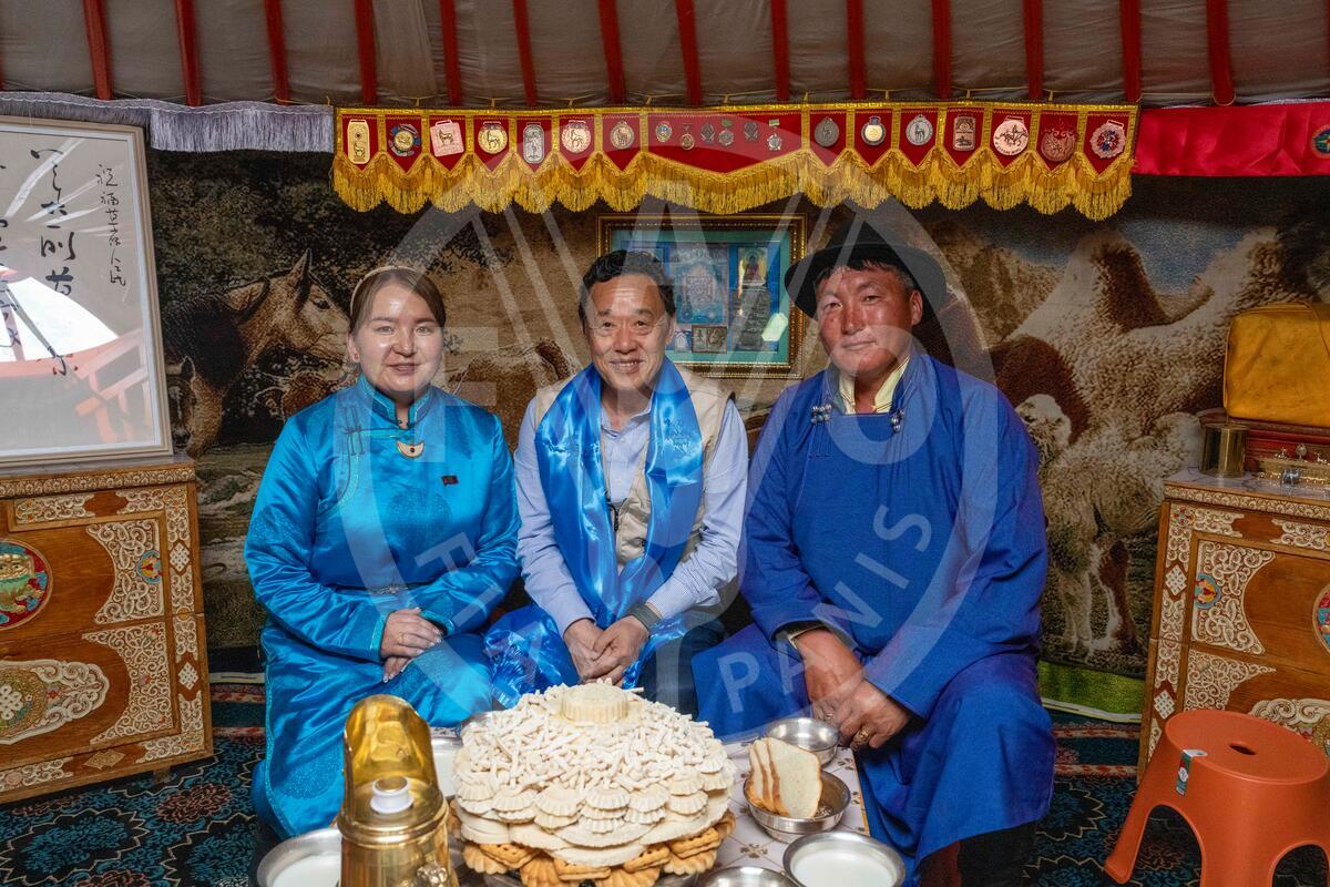 12 July 2024, Ulaanbaatar, Mongolia - FAO Director-General, QU Dongyu visits a traditional nomad family at Herder Household in the outskirt Ulaanbaatar, Mongolia.