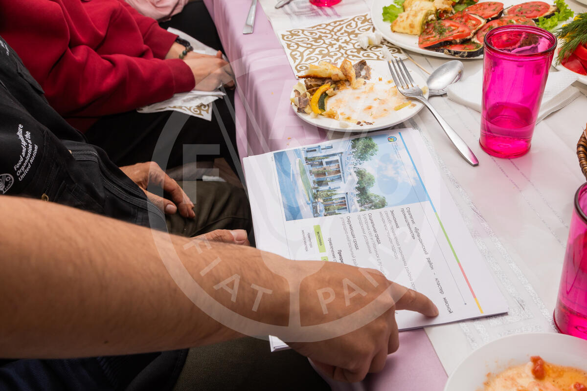 KAZAKHSTAN 2024. Discussion around a table filled with food
