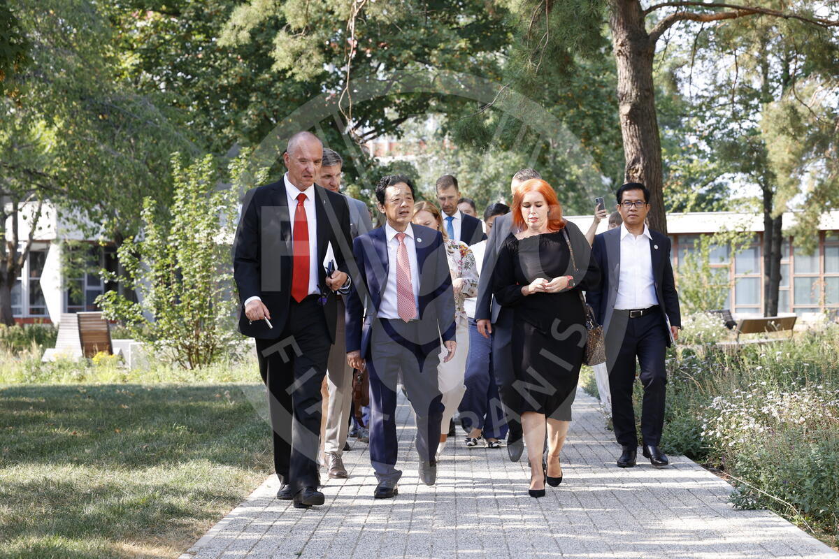 14 August 2024, Nitra, Slovakia. FAO Director-General QU Dongyu (C) visits the Slovak University of Agriculture (SUA) in Nitra.