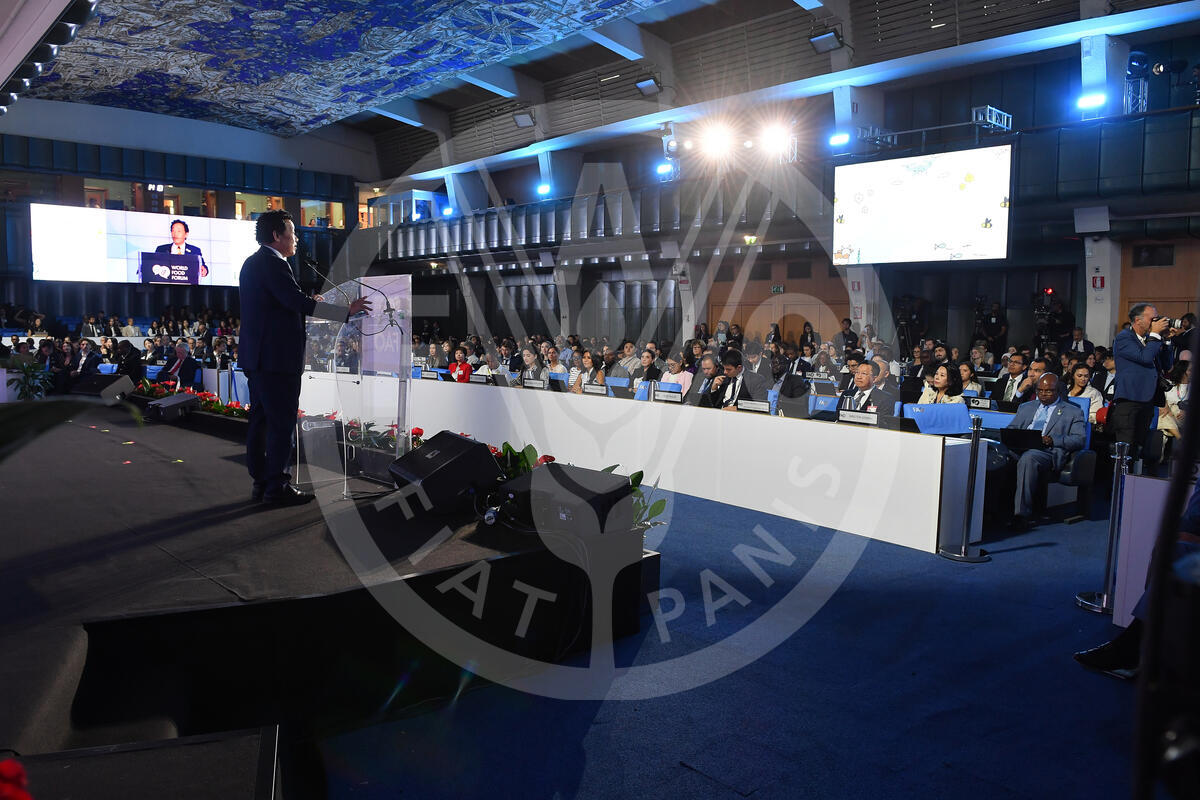 14 October 2024. Plenary Hall, FAO Headquarters, Rome, Italy. FAO Director-General QU Dongyu addresses the World Food Forum Youth Assembly Opening Ceremony.