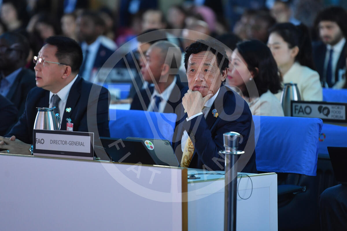 14 October 2024. Plenary Hall, FAO Headquarters, Rome, Italy. FAO Director-General QU Dongyu at the World Food Forum Youth Assembly Opening Ceremony.