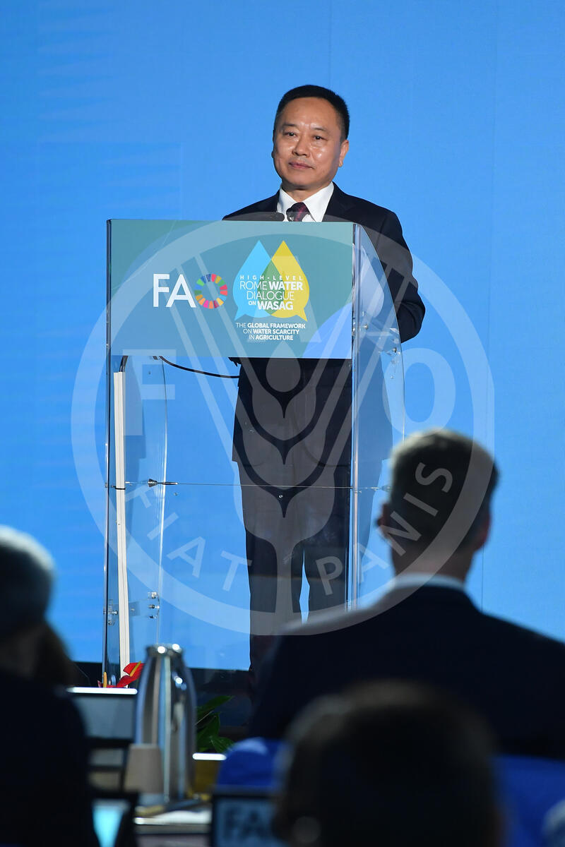 17 October 2024. Plenary Hall, FAO Headquarters, Rome, Italy. H.E. Li Guoying, Minister, Water Resources, China, gives his speech at High-Level Rome Water Dialogue on WASAG – the Global Framework on Water Scarcity in Agriculture.