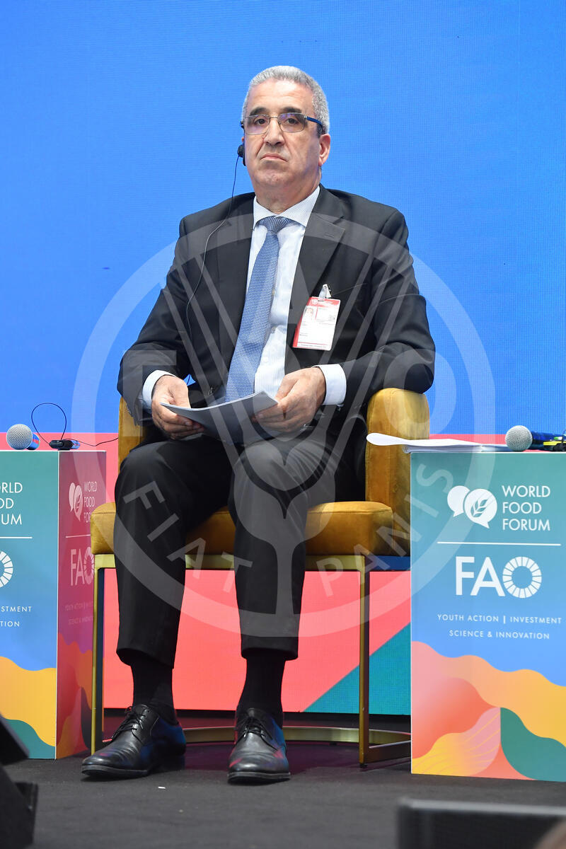 17 October 2024. Red Room, FAO Headquarters, Rome, Italy. Mr Omar Chafki, Director of the Bouregeg-Chaouia Water Basin Agency, Morocco, gives his speech at the Joint Rome Water Dialogue Session and SIF.