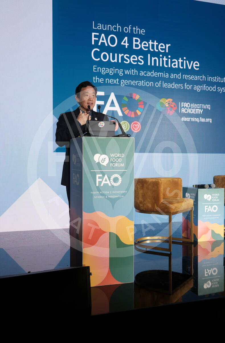 17 October 2024. Sheikh Zayed Centre, FAO Headquarters, Rome, Italy. FAO Director-General QU Dongyu during the Launch of the FAO 4 Better Courses Initiative.