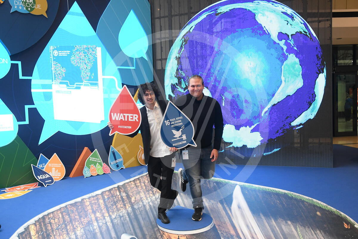 17 October 2024. Exhibition Booth, Atrium, FAO Headquarters, Rome, Italy. World Food Forum attendees enjoying the Atrium exhibitions.