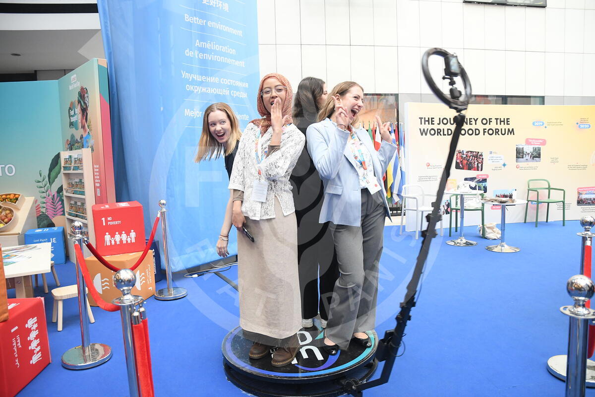 17 October 2024. Exhibition Booth, Atrium, FAO Headquarters, Rome, Italy. World Food Forum attendees enjoying the Atrium exhibitions.