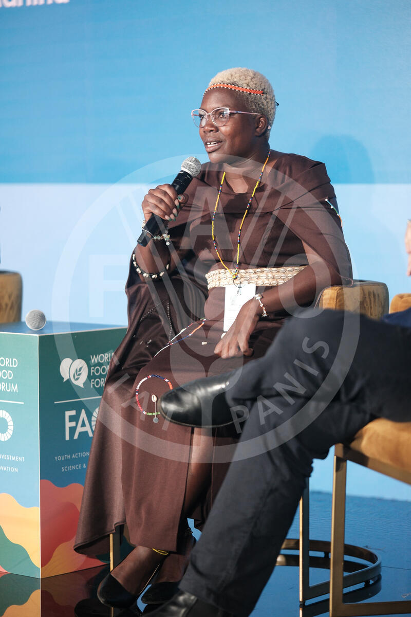 18 October 2024. Sheikh Zayed Centre, FAO Headquarters, Rome, Italy. Judy Kipkenda, Co-Chair of the Global Indigenous Youth Caucus and FAO Food Hero, gives her speech at the Indigenous youth voices in the implementation of the UN Global Indigenous Youth Forum outcomes event.