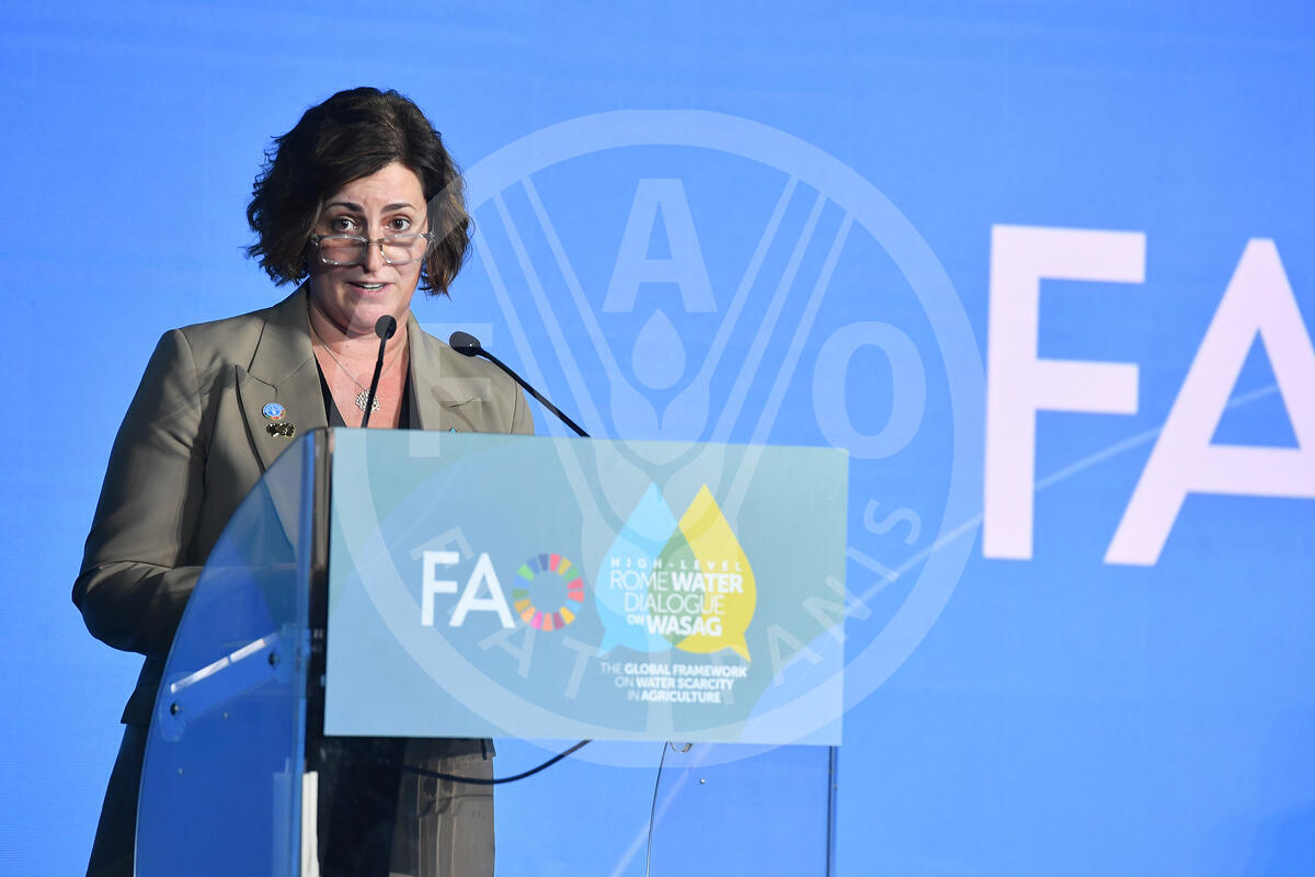 17 October 2024. Plenary Hall, FAO Headquarters, Rome, Italy. Beth Bechdol, Deputy Director-General Food and Agriculture Organization of the United Nations (FAO), gives her speech at High-Level Rome Water Dialogue on WASAG – the Global Framework on Water Scarcity in Agriculture.
