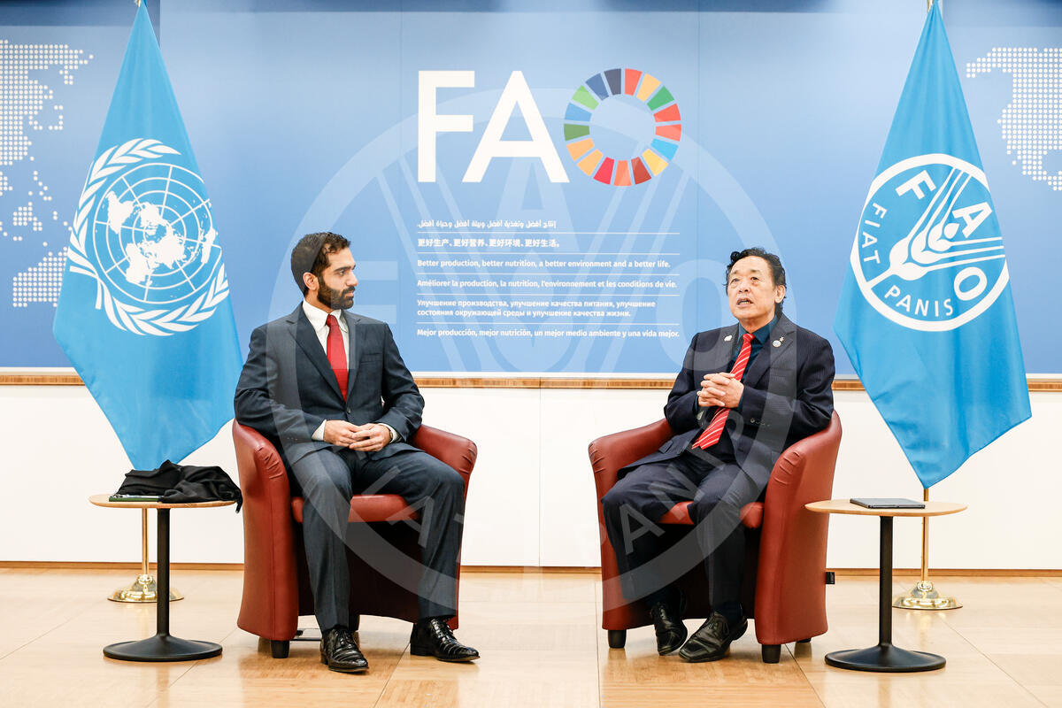 17 October 2024, Rome, Italy. FAO Director-General QU Dongyu meeting with Hassan Ali Al-Mulla, SILATECH for the signature of the Programme Contribution Agreement between SILATECH and FAO.