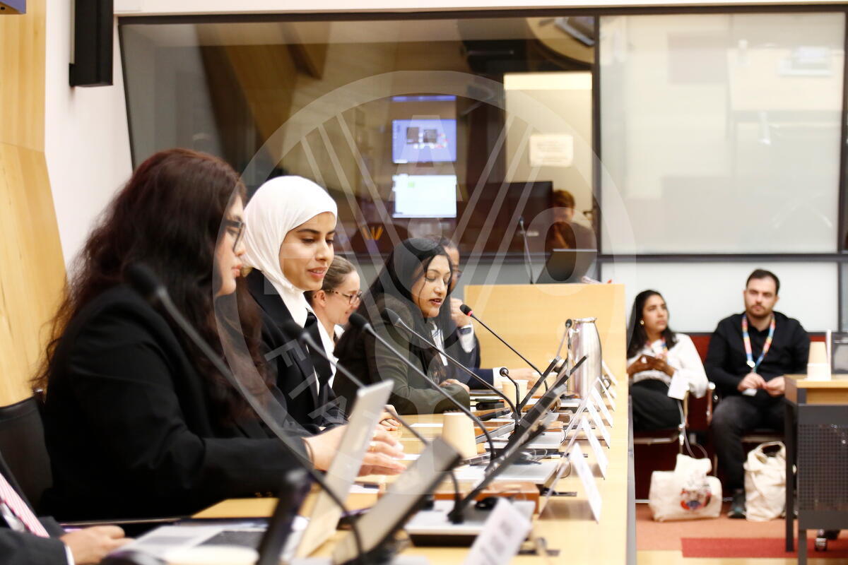 16 October 2024. German Room, FAO Headquarters, Rome, Italy. View of the panelists of the Sustainable agritech solutions for arid regions event.