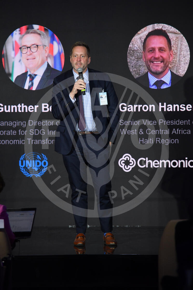 Garron Hansen, Senior Vice President of West and Central Africa and Haiti Region, gives his speech at the Startup Innovation Awards.
