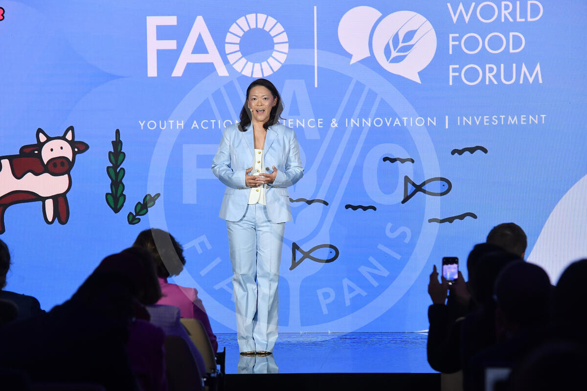 16 October 2024. Sheikh Zayed Centre, FAO Headquarters, Rome, Italy. Nancy Yuan (Strategic Program Manager), presents the Startup Innovation Awards.