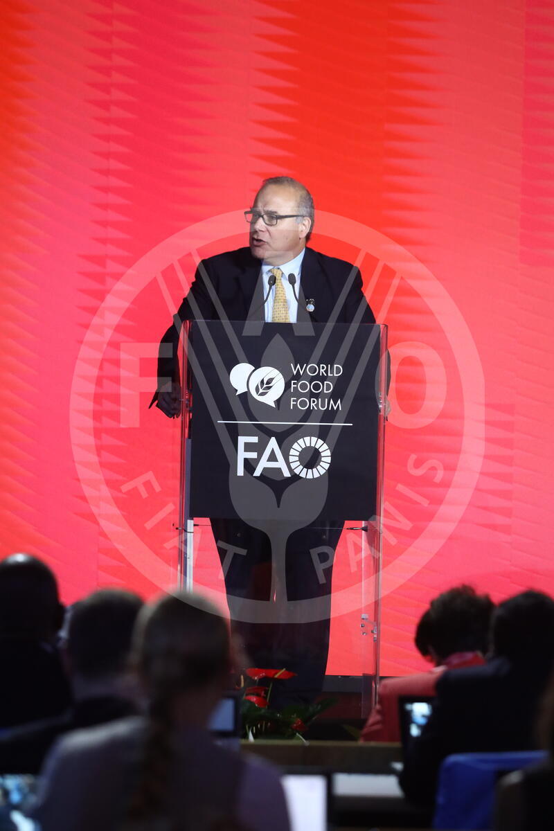 15 October 2024. Plenary, FAO Headquarters, Rome, Italy. Maximo Torero Cullen, FAO Chief Economist speaks at the event, part of the 2024 World Food Forum.