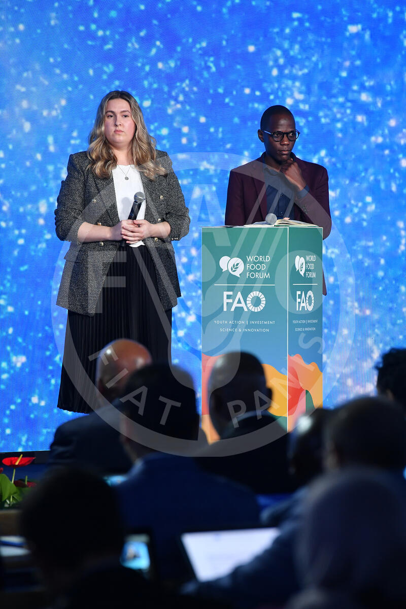14 October 2024. Plenary Hall, FAO Headquarters, Rome, Italy. Mawejje Harbert, World Farmers Organizations, speaks at the World Food Forum Grand Opening.