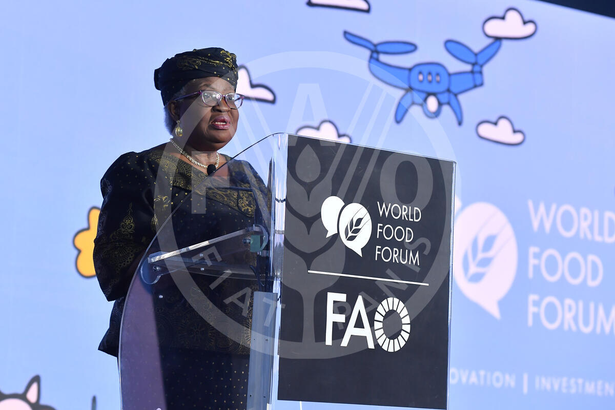 14 October 2024. Plenary Hall, FAO Headquarters, Rome, Italy. Ngozi Okonjo-Iweala, Director-General World Trade Organization (WTO) speaks at the World Food Forum Grand Opening.