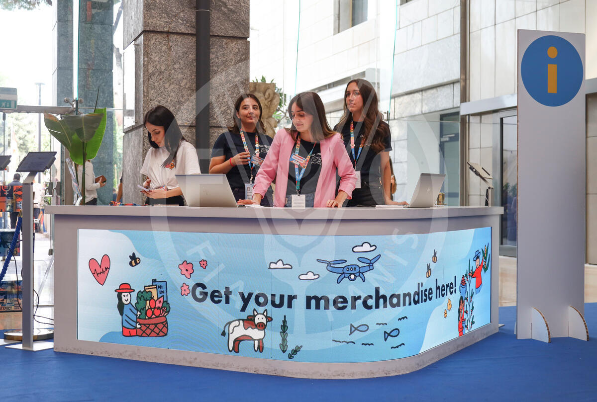 15 October 2024. World Food Forum Merchandise Booth, Atrium, FAO Headquarters, Rome, Italy.