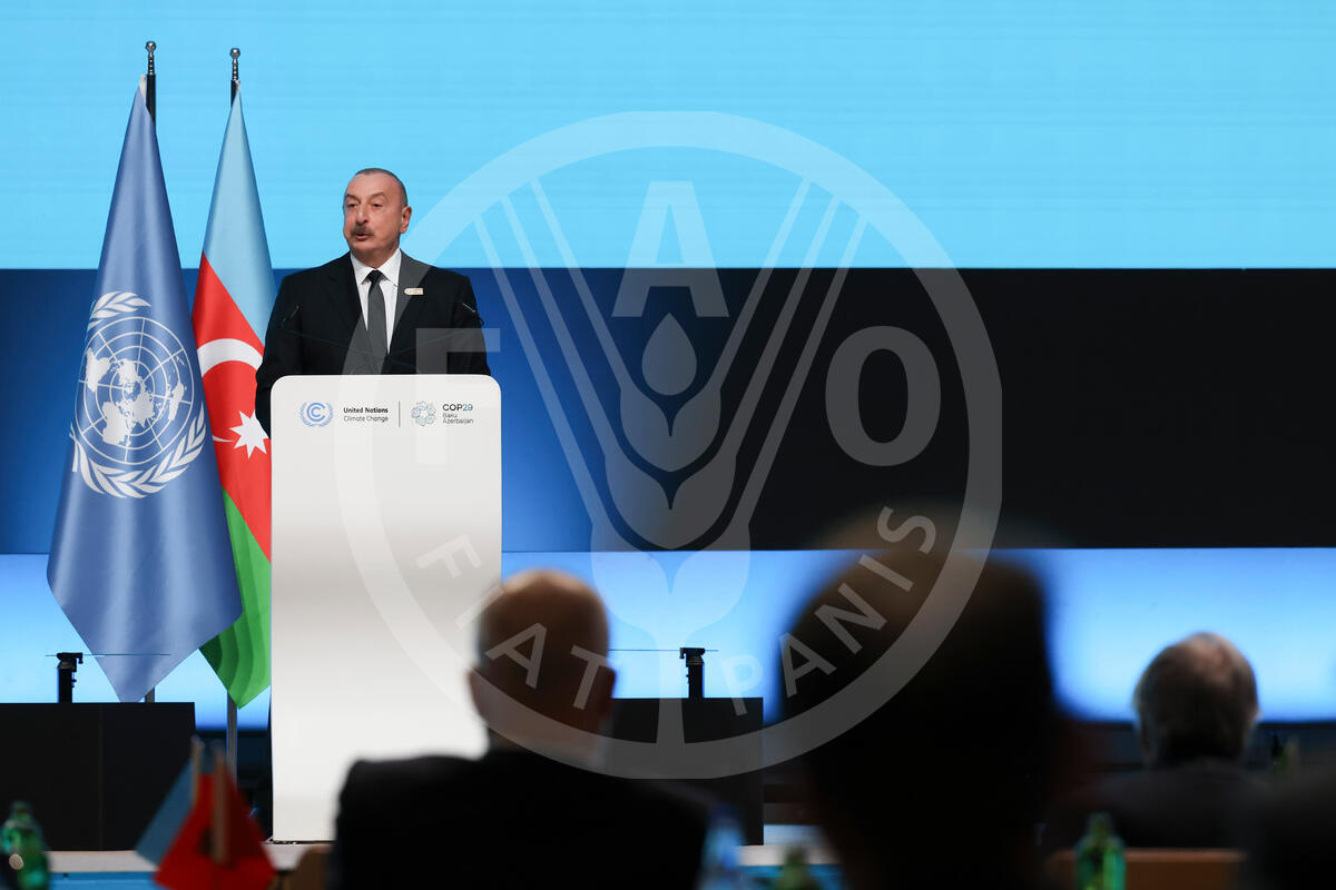 12 November 2024, Baku, Azerbaijan. President of Azerbaijan Ilham Aliyev, speaks during the opening session of the World Leaders Climate Action Summit during COP29. The 29th UN Climate Change Conference (COP29) runs from November 11 to November 22 2024.