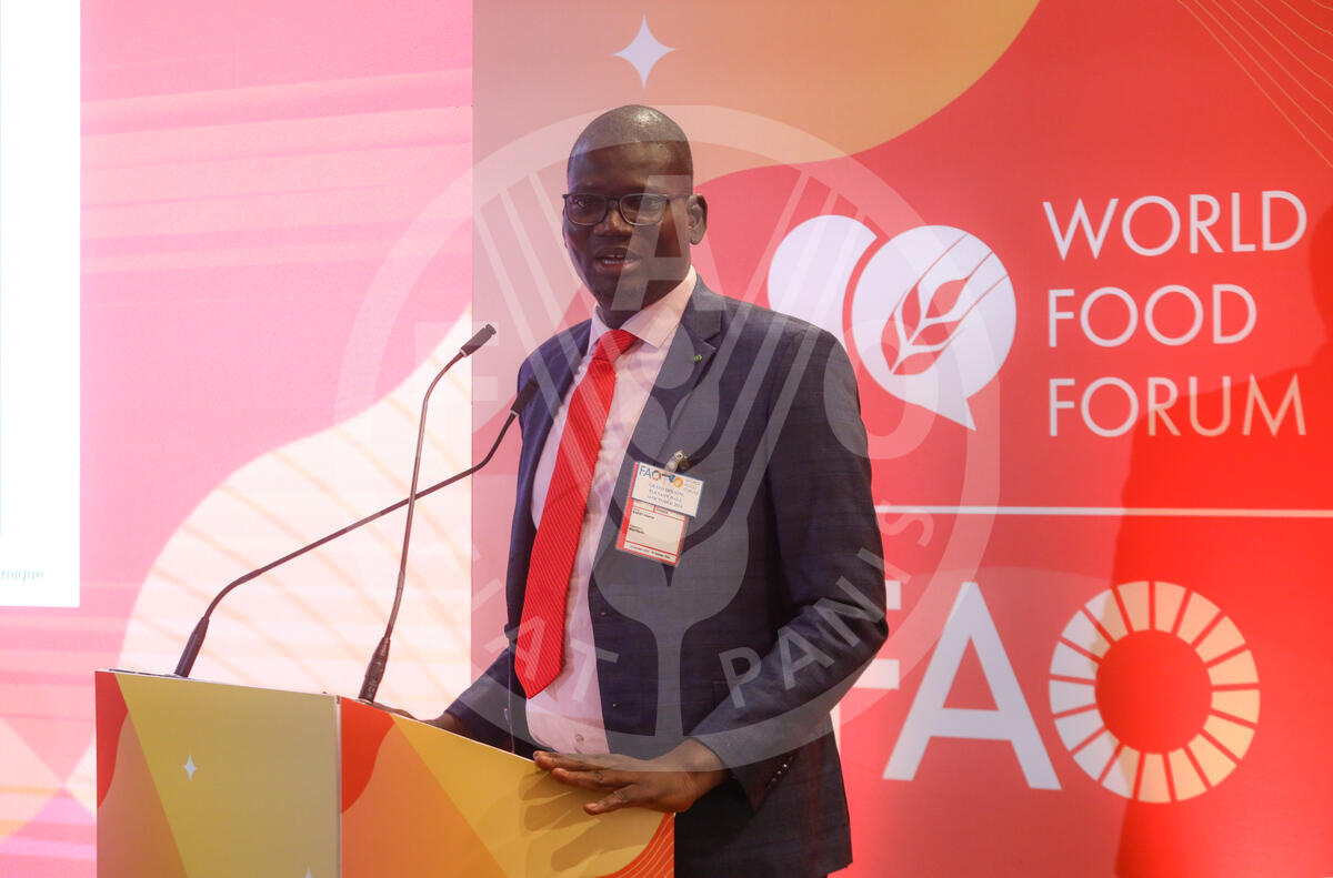 16 October 2024. Iran Room, FAO Headquarters, Rome, Italy. Adema Barry gives his speech at the Presentations of the Hand-in-Hand country investment plans event.