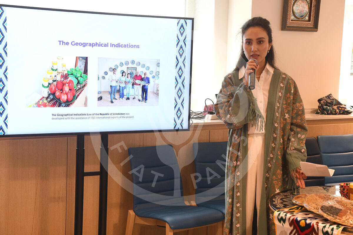 16 October 2024. Uzbekistan Lounge, FAO Headquarters, Rome, Italy. A student from the National Youth Delegation gives her speech at Uzbekistan Lunch: Culture Meets Innovation event.