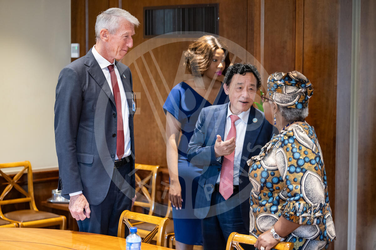 FAO Director-General QU Dongyu and WTO Director Ngozi Okonjo-Iweala during a bilateral meeting at the WTO Global Review of Aid for Trade 2024.