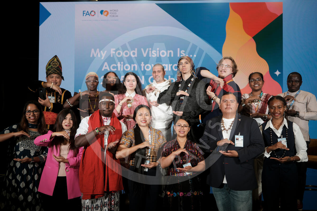 18 October 2024. Sheikh Zayed Centre, FAO Headquarters, Rome, Italy. View of the Indigenous Youth Leaders at the World Food Forum Indigenous Youth leaders in the implementation of the UN Global Youth Forum Outcomes event.