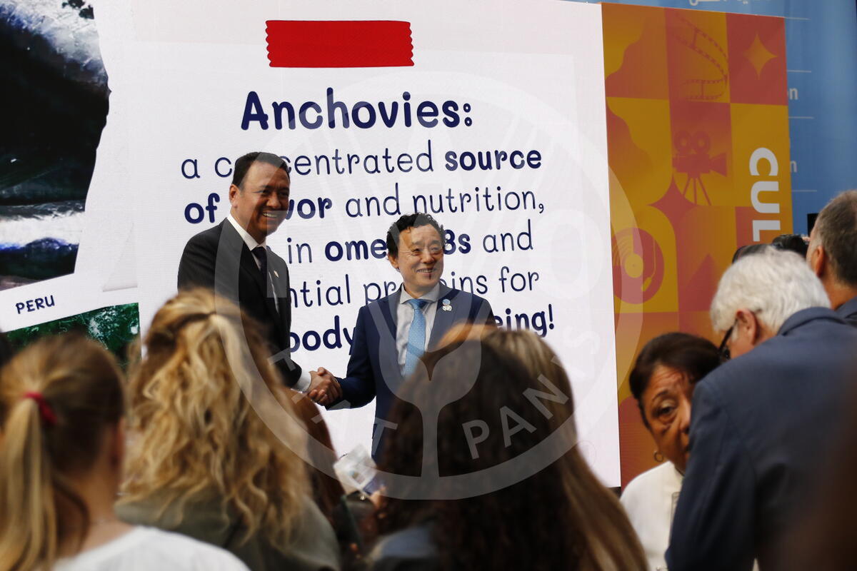 18 October 2024. Atrium, FAO Headquarters, Rome, Italy. FAO Director-General QU Dongyu, touring the Youth Culture Corner Exhibition entitled “Alma - Culturally Sustainable: How does it taste? Gastronomy as a tool to transform the food system.”