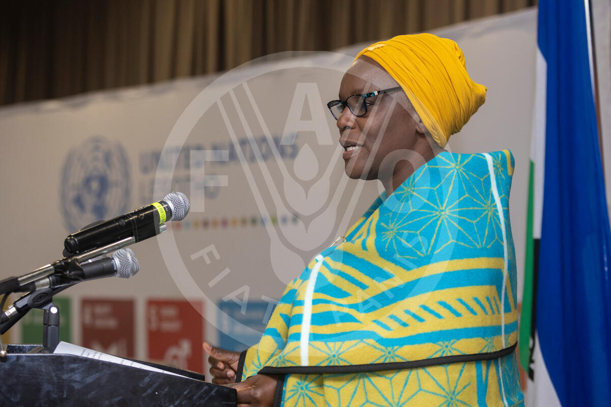 6 August 2024, Maseru, Lesotho - UN Resident Coordinator in Lesotho Amanda Khozi Mukwashi speaks during a National High Level Roundtable Meeting on Food Systems Transformation Agenda in Lesotho at the Avani Hotel
