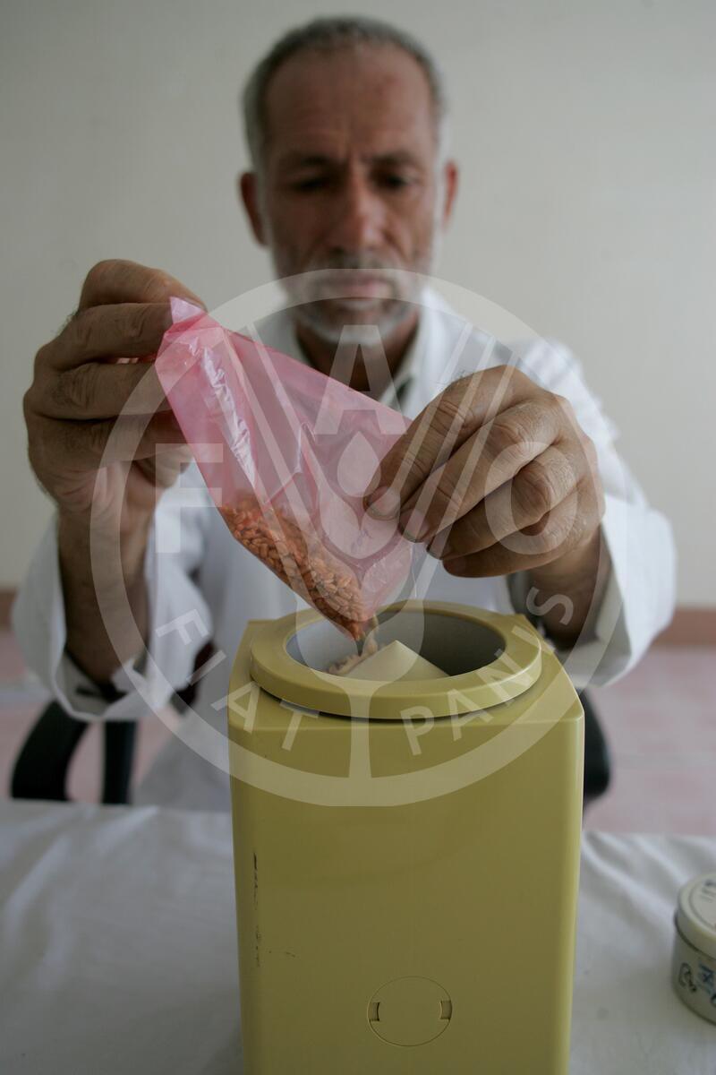 AFGHANISTAN 2007. A laboratory assistant dividing wheat seeds.