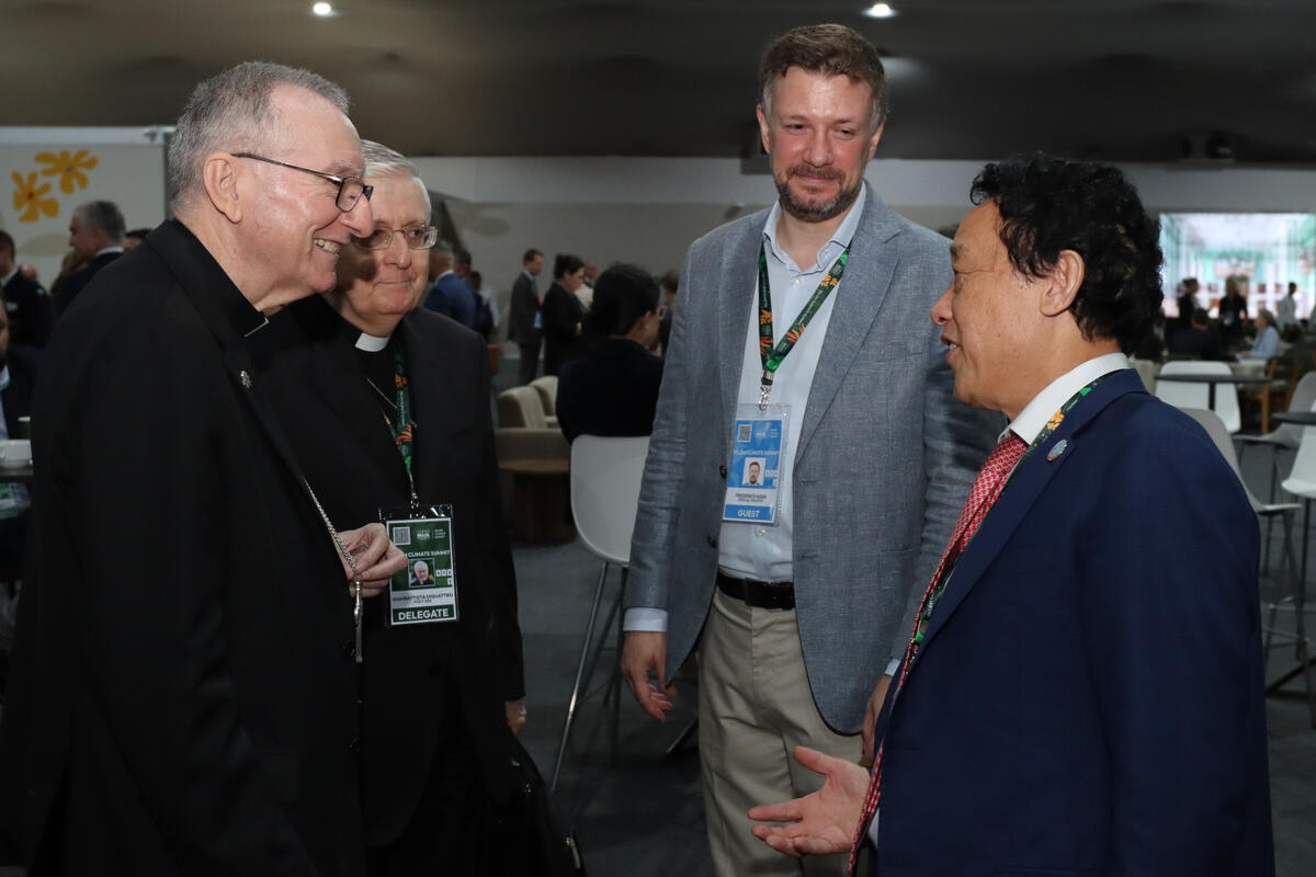 06 November 2025. Belém, Brazil. FAO Director-General QU Dongyu (R) with Cardinal Pietro Parolin, the Vatican Secretary of State. World leaders are gathering in Belém, Brazil, for the climate summit on 6 and 7 November, kicking off the 30th United Nations Climate Change Conference (COP30).