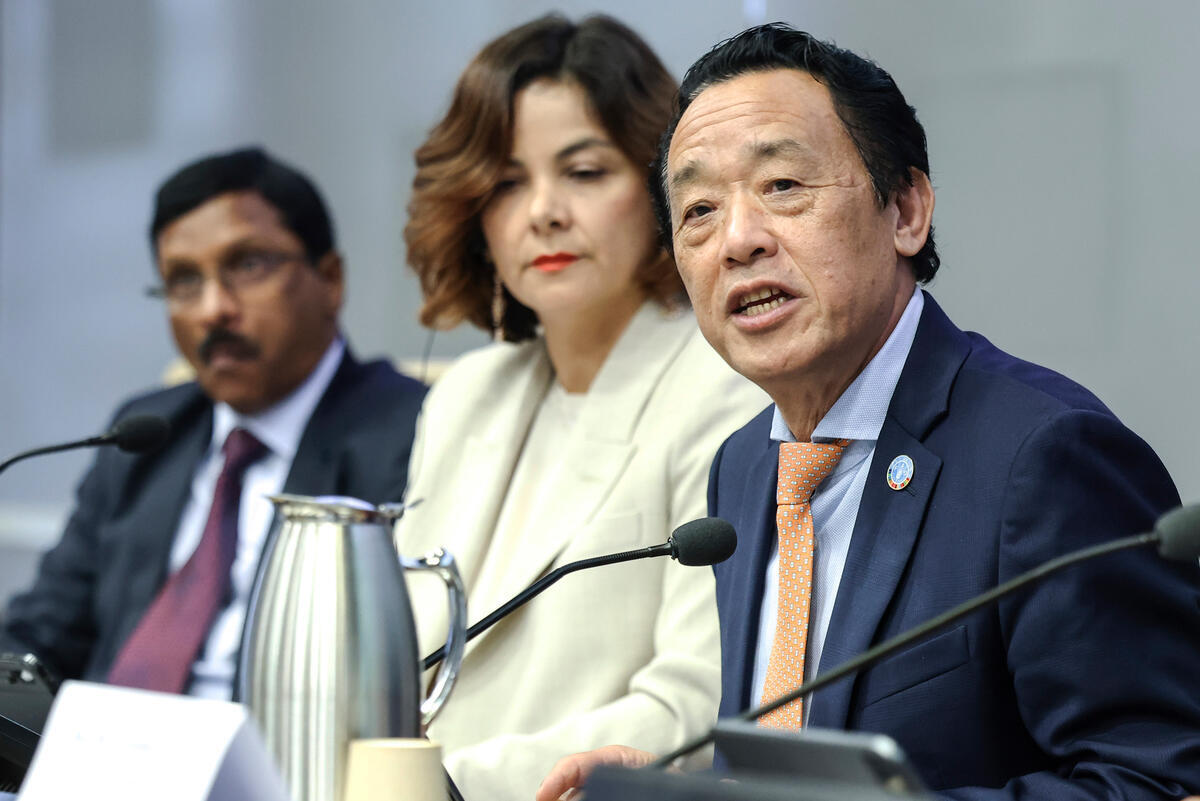 03 November 2025, Rome, Italy. FAO Director-General QU Dongyu delivers his remarks during the launch of the State of Food and Agriculture 2025 (SOFA) . FAO Headquarters ( Sheikh Zayed Centre ).