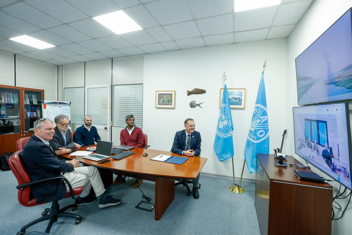 21 November 2025, Rome, Italy - Manuel Barange (R), Assistant Director-General signing the iMarine Memorandum of Understanding with Roberto Scopigno, Research Director, Director of CNR-ISTI, FAO Headquarters (Room F-302).