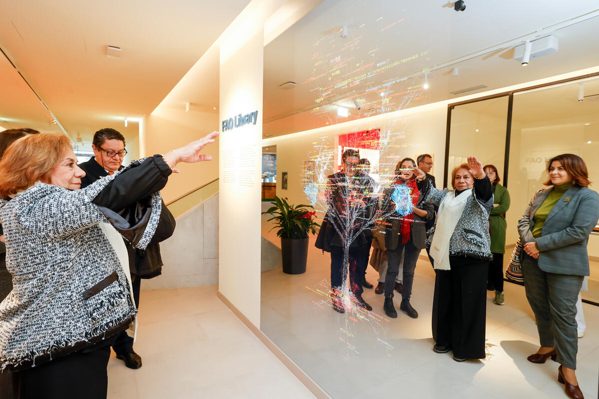 27 November 2025, Rome, Italy. FAO MuNE visit: Minister for Foreign Affairs of Colombia Rosa Yolanda Villavicencio Mapy (L) visits the newly inaugurated Food and Agriculture Museum & Network (FAO MuNe) FAO Headquarters (MuNe).