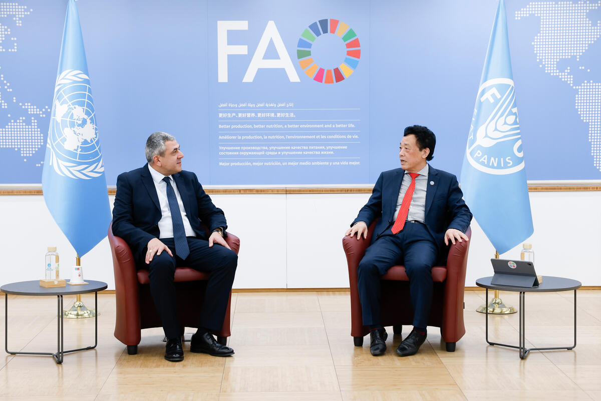 2025 ITALY. FAO DG QU Dongyu meeting with China Vice Governor of Hainan Province, Bateer
