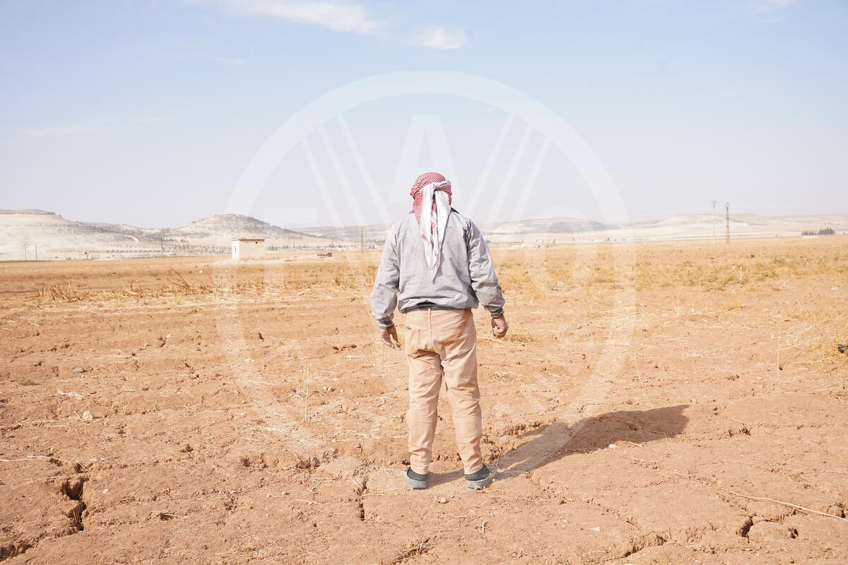 4 November 2025. Salameya, the Syrian Arab Republic. Farmer Abdulla Al Derzi stands on his dry land in Al Salameya, Hama Governorate, hoping to plant winter crops that could provide income for his family.