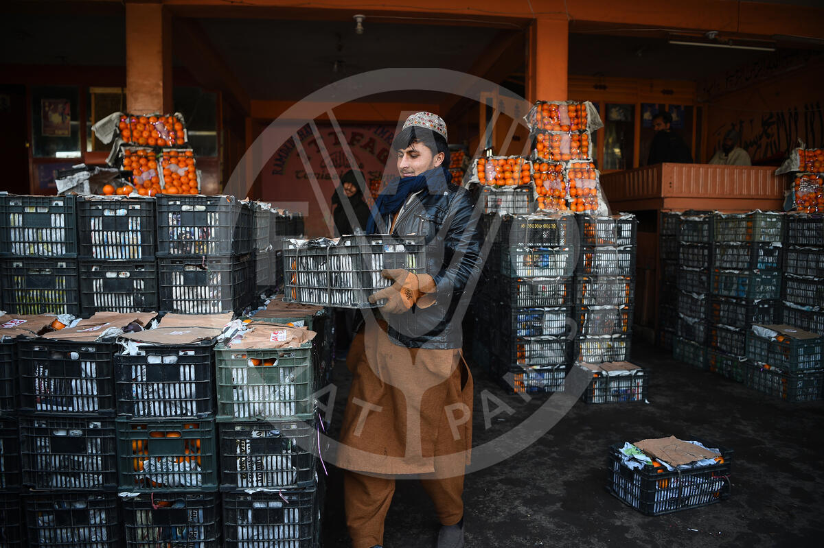 06 January 2021, Jalalabad, Afghanistan. A shopkeeper at a fruit market in Jalalabad.