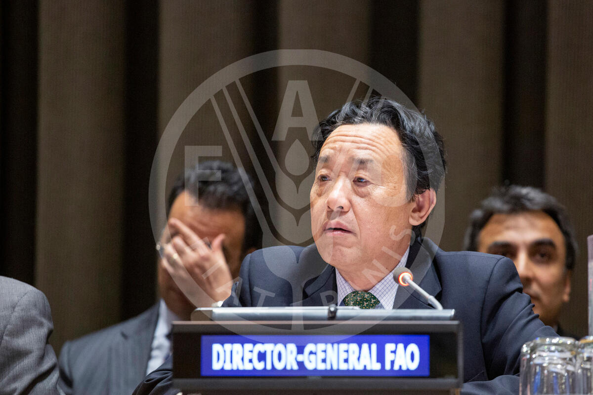 12 February 2020, United Nations, New York, NY, USA - FAO Director-General QU Dongyu speaks during Interactive Dialogue on "Targeting Hunger: South-South and Triangular Cooperation for Transforming Agriculture" event at the United Nations on February 12, 2020 in New York City.