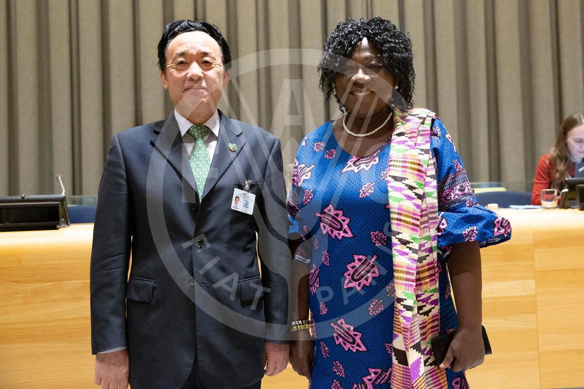 12 February 2020, United Nations, New York, NY, USA - FAO Director-General Qu Dongyu pose with Lidia Sasu at the United Nations on February 12, 2020 in New York City.