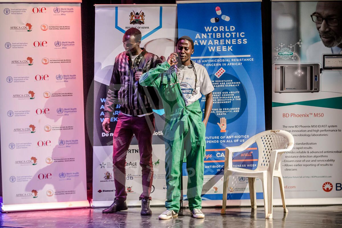 23 November 2019, Nairobi, Kenya - Students perform at the stage during The World Antibiotic Awareness Week Student Day in Nairobi, Kenya on November 23, 2019. The World Antibiotic Awareness Week (WAAW) presents an opportunity to scale up the coordination and collaboration efforts between FAO, OIE and WHO to mitigate and contain the spread of AMR. The first regional WAAW is held in Nairobi, 18-24th November, 2019 with the goal of strengthening AMR coordination and collaboration in Africa.